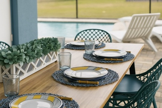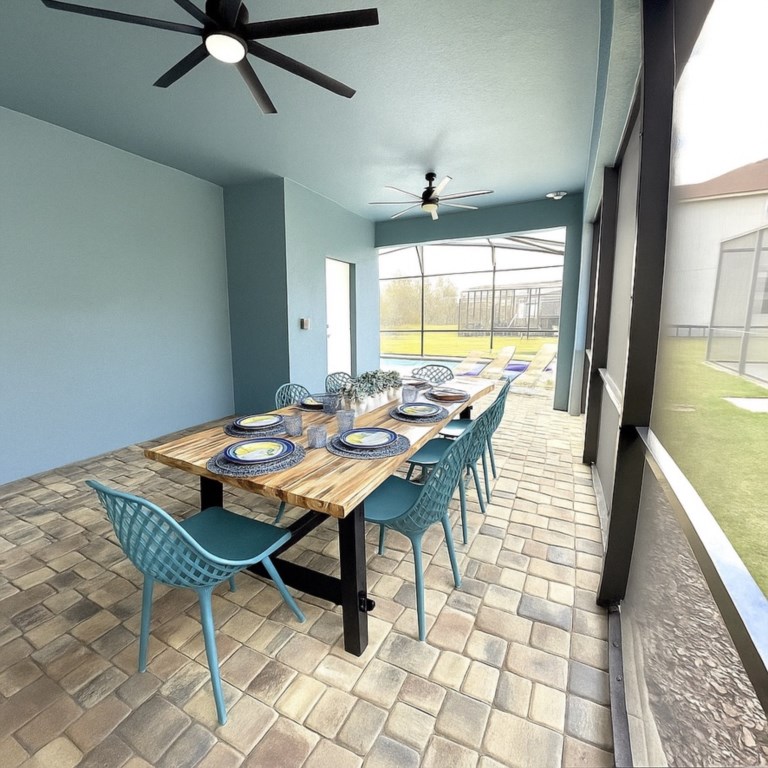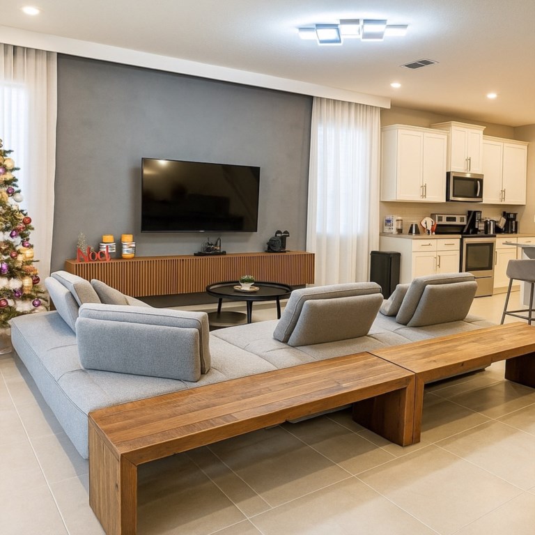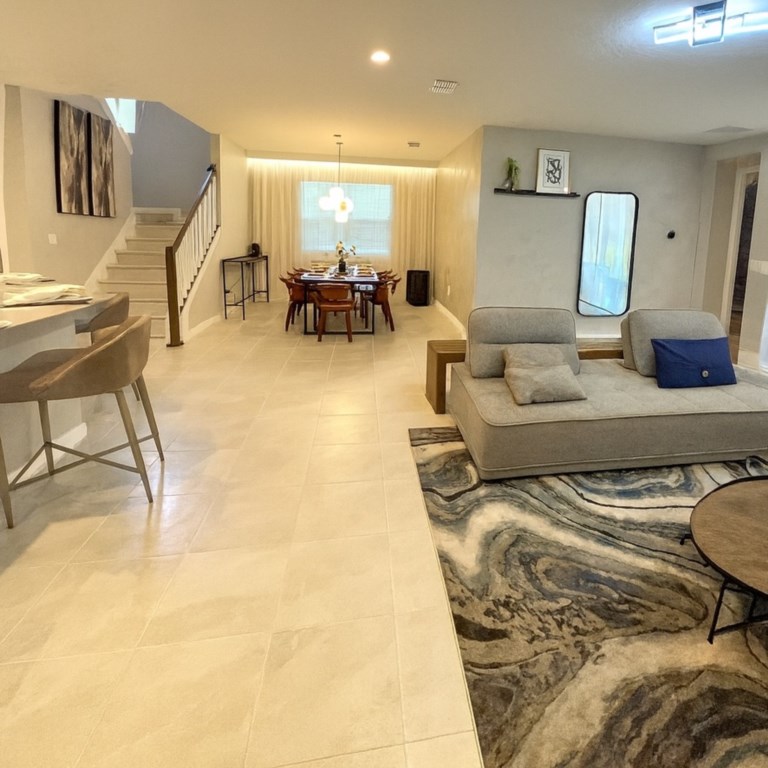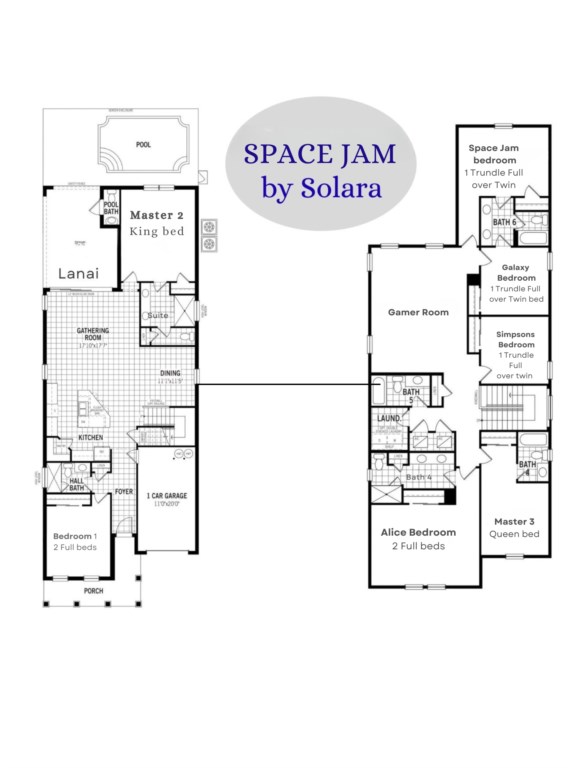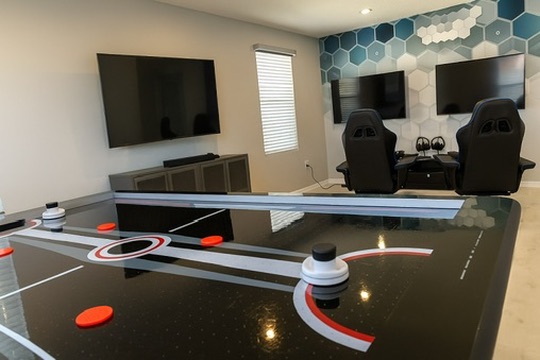 -Listing description Absolutely perfect for large families and multi-family groups, this spacious 7-bedroom home at Solara Resort offers comfort, entertainment, and resort-style amenities just minutes from Orlando’s top attractions. Designed for memorable vacations, the home comfortably accommodates up to 22 guests, combining open living spaces, private pool, game areas, and full access to one of the most sought-after resort communities in Central Florida. - The space This executive home features an open-concept layout with vinyl flooring throughout and thoughtfully designed spaces for families and groups. First floor: • Master suite with king bed and private bathroom • Second bedroom with two full beds • Open living, dining, and fully equipped kitchen Second floor: • Second master suite with queen bed and private bathroom • Fourth bedroom with two full beds and private bathroom • Fifth bedroom with one trundle full over twin bed • Sixth bedroom with one trundle full over twin bed (shared bathroom) • Seventh bedroom with one trundle full over twin bed • Large playroom with TVs and gaming area Step outside to enjoy a private pool and spa, outdoor seating, and Florida sunshine. - Guest access Guests have full access to the entire home and to Solara Resort amenities available to short-term guests, including clubhouse, resort pool, fitness center, sports courts, and more. - Solara Resort amenities As our guest, you’ll enjoy access to one of Orlando’s premier resort communities, featuring: • Resort-style pool and splash pad • FlowRider®? surf simulator (fees may apply) • Fitness center • Basketball, volleyball, and soccer courts • Game room and playground • On-site restaurant, bar, and convenience store Some amenities or activities may require reservations or additional fees and are subject to resort availability. - Interaction with guests We are available 24/7 to assist you before, during, and after your stay, ensuring a smooth and enjoyable experience. - Other things to note Optional services • Pet fee (pre-approval required): $25 per pet, per night (Please inform us of the number, breed, and size of pets prior to booking. Discounts may apply for longer stays.) • Pool heating: $55 per day Pool heat must be requested and paid at least 48 hours prior to arrival. Temperature may vary depending on weather conditions. Pool heating disclaimer No specific pool temperature is guaranteed. During winter months or cold fronts, pool heaters may struggle to maintain higher temperatures. Pool heat cannot be activated or refunded on short notice. -Housekeeping There is no daily housekeeping. The home is professionally cleaned and inspected before arrival. Mid-stay cleaning is available upon request for an additional fee. -BBQ grill BBQ grill is available for guest use. Guests are responsible for refilling propane if needed and assume all responsibility when using the grill. -Online deliveries Some delivery services may have restrictions within resort communities. Please contact us before placing orders. - Getting around Nearby essentials and shopping: • Walmart, Publix, Target • Vineland Premium Outlets • The Mall at Millenia • Florida Mall Golf courses nearby: • Falcon’s Fire Golf Course • Celebration Golf Club • Waldorf Astoria Golf Club • Mystic Dunes Golf Club