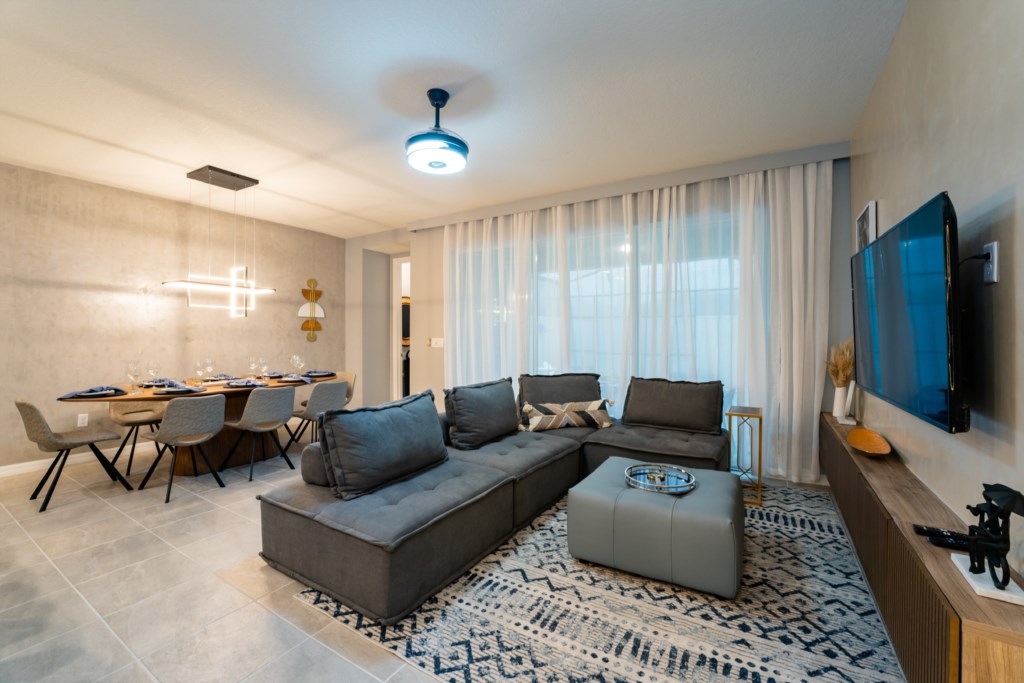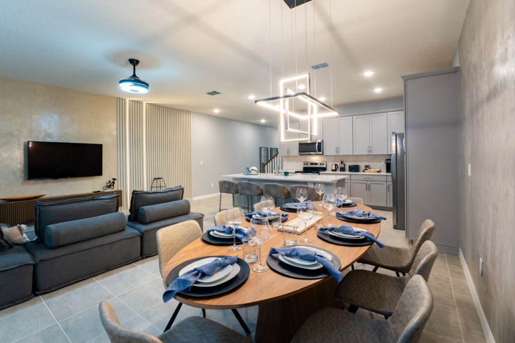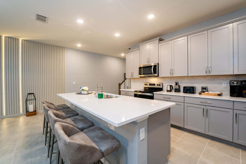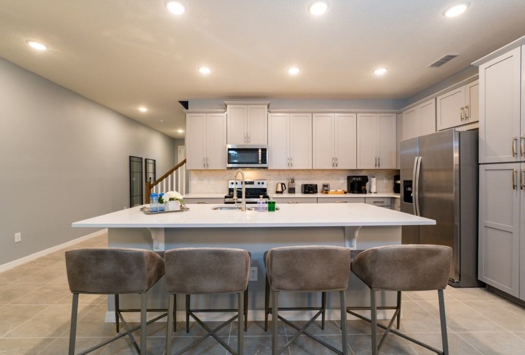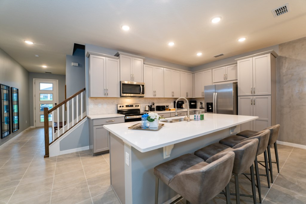 Modern Decor plus incredible amenities. This 5 bedrooms, 5 bathrooms plus game room Townhouse, beautifully decorated offers luxury and comfort for an unforgettable vacation! Located 15 minutes from Disney in the prestigious and popular Solara Resort. Amenities like Free Wi-Fi, Smart Tvs in all bedrooms, PS$, private heated pool, FREE BBQ Grill and full laundry .