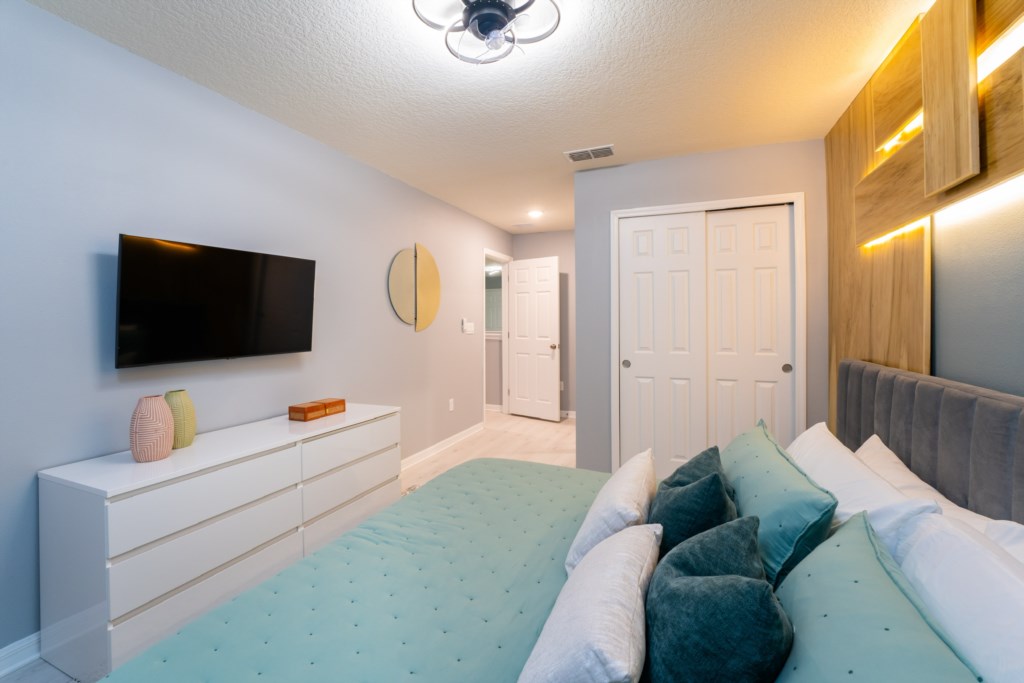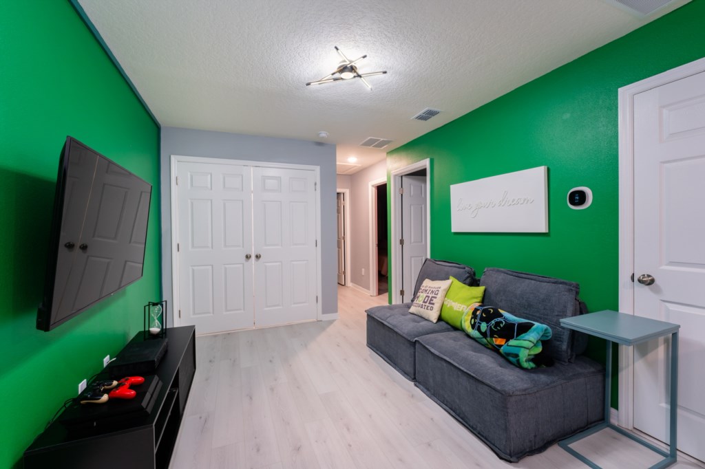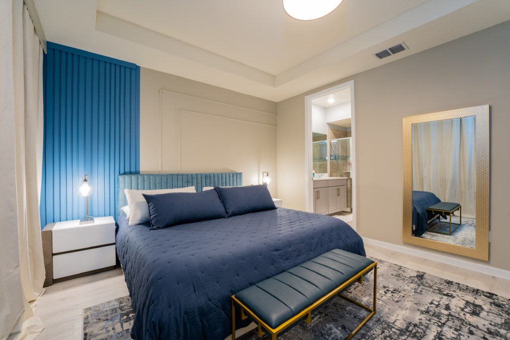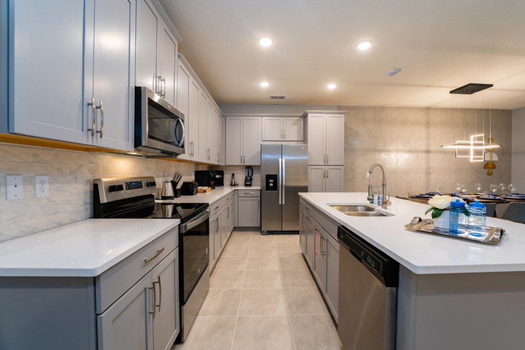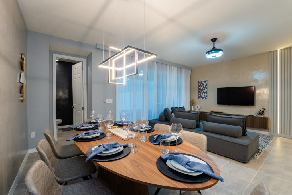 Modern Decor plus incredible amenities. This 5 bedrooms, 5 bathrooms plus game room Townhouse, beautifully decorated offers luxury and comfort for an unforgettable vacation! Located 15 minutes from Disney in the prestigious and popular Solara Resort. Amenities like Free Wi-Fi, Smart Tvs in all bedrooms, PS$, private heated pool, FREE BBQ Grill and full laundry .
